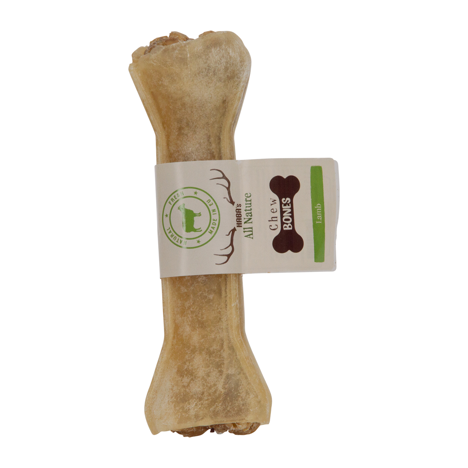Een smakelijke kauwbeen voor honden, gemaakt van geperst rundsleer en op smaak gebracht met lam.